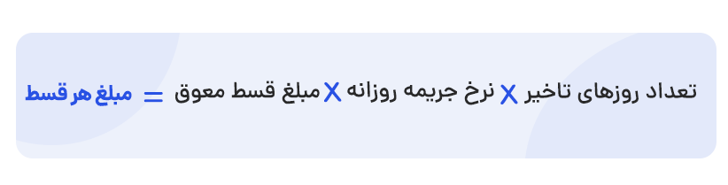 جریمه دیرکرد= (مبلغ قسط معوق x نرخ جریمه روزانه x تعداد روزهای تاخیر)