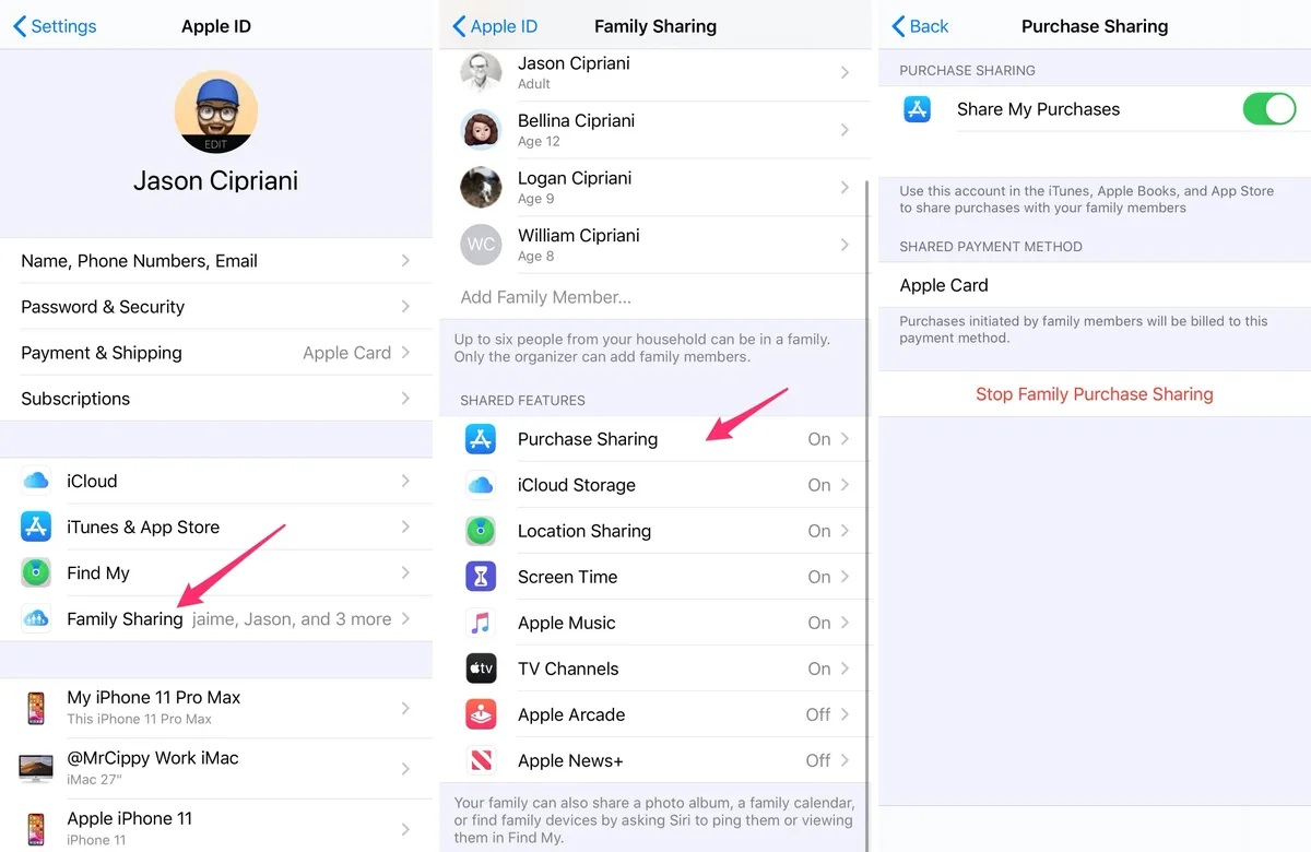 ۷. اشتراک‌گذاری خریدها با Family Sharing؛ استفاده برای همه